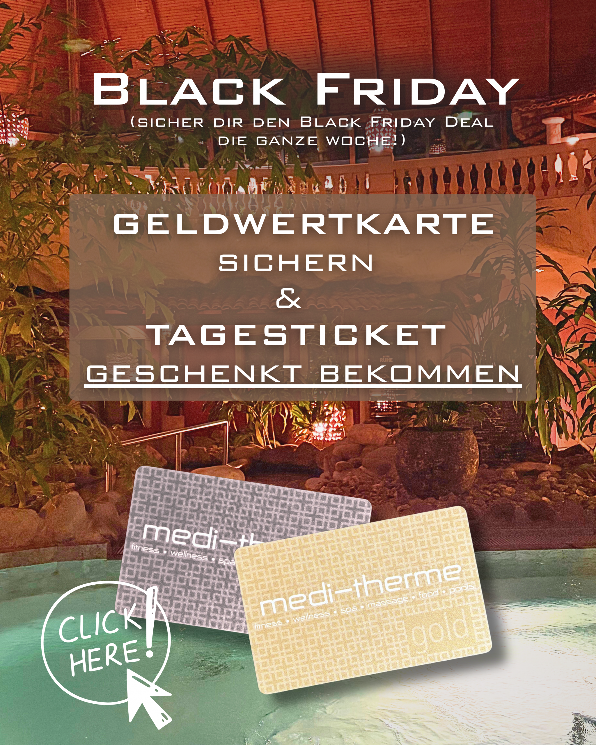 Die Geldwertkarte bietet Ihnen einen erheblichen Komfortgewinn. Der Preisnachlass von bis zu 17% wird auf alle 4-Stunden-/Tageskarten sowie auf Ihren Gastronomieverzehr angerechnet, jedoch nicht auf bereits ermäßigte Tarife oder Aktionen. Ebenfalls können Sie mit der Geldwertkarte bargeldlose Zahlungen Ihrer Massage-, Kosmetik- und Solarienbesuche vornehmen, wobei diese nicht rabattiert werden.